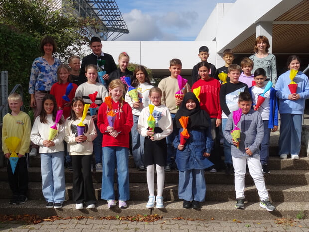 Wir durften unsere 21 neuen Fünftklässler und deren Eltern in unserer Aula begrüßen. Leana am Klavier, unsere Sechstklässler als Paten, die Klassenlehrkräfte Frau Krempel und Frau Blauhut-Rumpel sowie Rektor Essig nahmen unsere Fünftklässler mit einem stimmungsvollen Programm freudig in Empfang. Im Anschluss an das Programm gingen die SchülerInnen mit Ihren Klassenlehrkräften in die Klasse und die Eltern konnten die Wartezeit bei Kaffee und anregenden Gesprächen in der Aula verbringen. Die Bewirtung übernahm unser Förderverein mit tatkräftiger Unterstützung einiger Schülerinnen der Klassen 9 und 10. In den ersten Schultagen fand gleich ein zweitägiges Teamtraining mit verschiedenen Aktionen drinnen und draußen mit unseren Schulsozialarbeitern Frau Baumann und Herrn Schulz statt. Wir wünschen unseren Fünfern einen guten Start und eine spannende Zeit an der Naturparkschule Katharina Kepler.