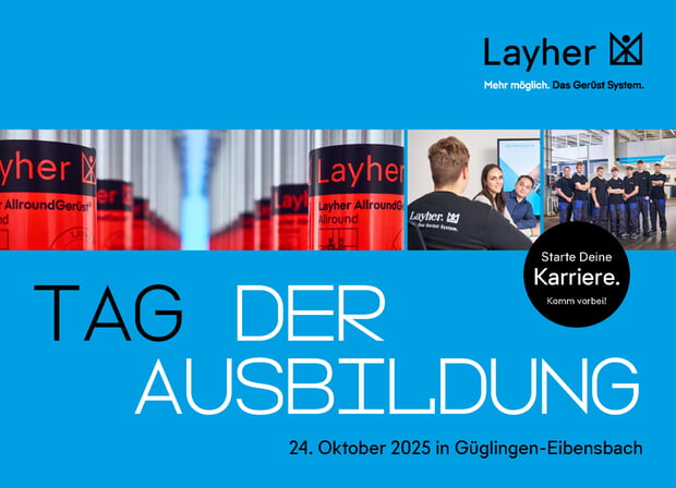 Im Rahmen der Veranstaltung „Tag der Ausbildung“ am 24. Oktober 2025 haben junge Menschen die Möglichkeit, bei Layher verschiedene Ausbildungsberufe im gewerblichen, technischen und kaufmännischen Bereich in kompakter Form „praktisch“ zu erleben. Von 16 bis 19 Uhr erwartet die Schülerinnen und Schüler ein abwechslungsreiches Programm mit Vorträgen zur Ausbildung bei Layher, Einblicken in verschiedene Berufsbilder und Tipps für die Bewerbung. Aktuelle Auszubildende berichten aus ihrem Alltag, und die angehenden Nachwuchskräfte können ihre künftigen Ausbilderinnen und Ausbilder persönlich kennenlernen.