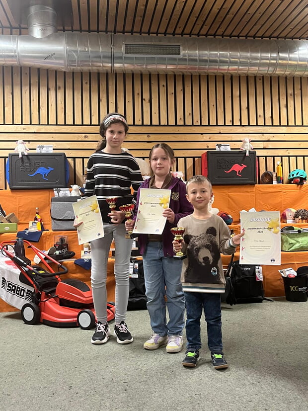 Kürzlich fand unser beliebtes Jedermannschießen statt und wir durften viele nette Gäste in unserem Schützenhaus begrüßen. Obwohl das Wetter nicht ganz so toll war, gab es dennoch knapp 100 Starts. Unser Scatschießen kam bei den Kleinen sehr gut an. Die Siegerehrung am Abend war sehr gut besucht, was uns natürlich freut, da wir viele tolle Preis zu vergeben hatten. Anbei ein paar Platzierungen: Scatschießen bis 9 Jahre: 1. Platz Lisa Neher, 2. Platz Milas Mahle, 3.Platz Timo Braun. Scatschießen ab 10-13 Jahre: 1. Platz Lenny Grube, 2. Platz Marlene Labs, 3. Platz Lucy Rauscher.