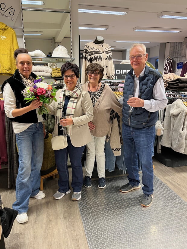 Am vergangenen Wochenende durfte ich dem Team des Modehauses Holzhäuer mit einem Blumengruß zum Jubiläum gratulieren. Bereits seit 55 Jahren bietet das Geschäft in der Maulbronner Straße Mode und Textilwaren an. Für das Jubiläum hatte das Modehaus am Freitag länger geöffnet und am Sonntag einen verkaufsoffenen Tag mit „Hocketse“ organisiert. Ich freue mich, dass wir in unserem Ort noch ein so tolles, inhabergeführtes Modegeschäft haben. Herzlichen Glückwunsch im Namen der Gemeinde und weiterhin alles Gute und viel Erfolg!