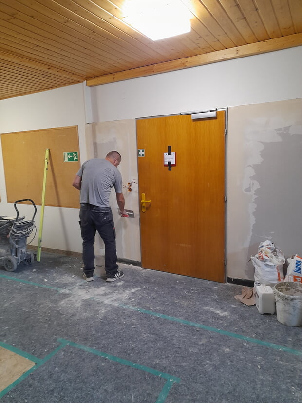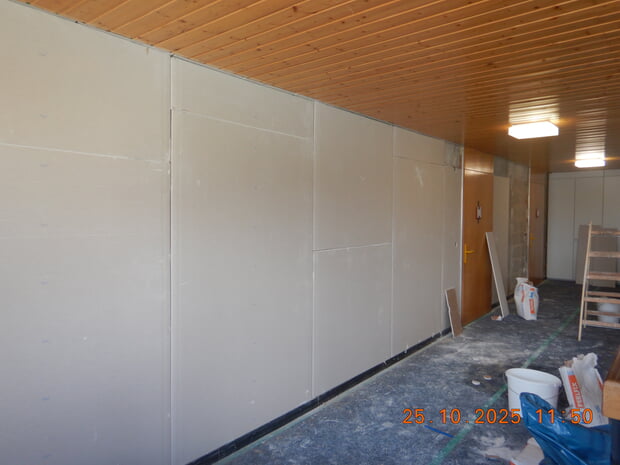 In unserer Grundschule werden die Herbstferien aktuell für Erneuerungsarbeiten im Brandschutz genutzt. Mehrere Firmen sind vor Ort, um die Brandlast in den Fluren zu reduzieren. Dazu musste die bisherige Holzvertäfelung entfernt und die Wände neu beplankt und gestrichen werden. Nach einer Brandschau mit Kreisbrandmeister Bernd Halter und Feuerwehrkommandant Matthias Fried wurde festgestellt, dass der Flur als Fluchtweg brandlastarm sein muss. Deshalb dürfen künftig auch keine Garderoben mehr im Flur angebracht werden, und die baulichen Maßnahmen waren dringend notwendig. Weitere Arbeiten im Bereich Brandschutz stehen in nächster Zeit an: Geplant sind unter anderem die Installation einer Fluchttreppe aus dem ersten Stock sowie im Sommer eine Einhausung des Treppenhauses.