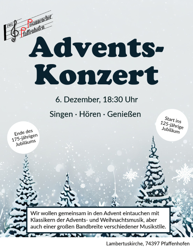 Wir laden herzlich ein zum Adventskonzert am 6. Dezember in der Lambertuskirche, anlässlich unseres