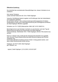 Öffentliche Zustellung an Iris Hoyer