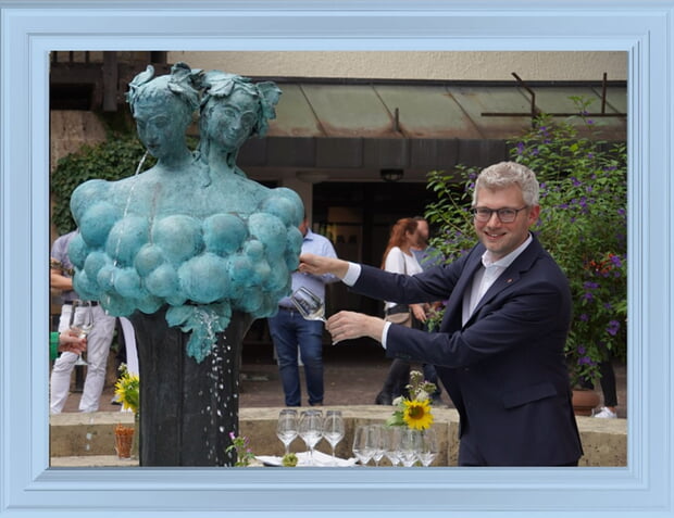Einer meiner Lieblingsplätze in Güglingen ist der Weinbrunnen im Deutschen Hof. Aus dem kunstvoll gestalteten Brunnen sprudelt nicht nur Wasser, sondern regelmäßig auch der Rebensaft unserer Wengerter. Der Weinbrunnen steht für Geselligkeit und Gemeinschaftsgefühl in unserer Stadt, aber auch für die Verbindung von der Kunst im Stadtraum und der Weinlandschaft, die uns umgibt. Und ob bei Hochzeiten, Märkten und Festen oder unabhängig von Veranstaltungen, wenn Kinder am Wasser spielen: der Weinbrunnen ist Anlaufstelle für Jung und Alt, einfach ein Lieblingsplatz.