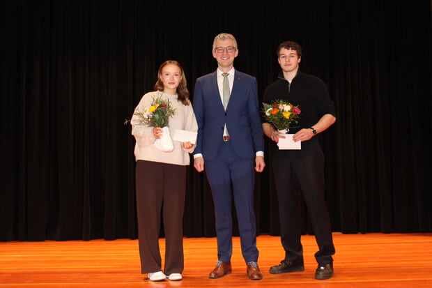 Videos sportlicher Erfolge gab es bei der Ehrung der Sportlerinnen und Sportler zu sehen. Joel Bracher gewann 2025 in den Altersklassen U16 und U18 Gold im Kata-Wettbewerb und Silber im Kumite. Als deutscher Nationalathlet bei der European Goju-Ryu Championship in Rumänien erkämpfte er sich die bronzene Medaille im Kumite und die silberne Medaille im Teamwettbewerb. Der lange Flug sei eine der größten Herausforderungen bei diesem Turnier in Rumänien gewesen, erklärte Joel Bracher im anschließenden Gespräch mit Michael Tauch. Auch die Sportschützin Nele Stark berichtete von ihrem Flug nach Argentinien und den schlechten Wetterbedingungen als Herausforderungen bei ihrem World Cup-Debüt. Bei diesem erreichte sie Platz sechs im Dreistellungskampf. Auf Platz eins qualifizierte sich Nele Stark für die Teilnahme an der Weltmeisterschaft und erreichte dort im Team Platz vier. Ein weiterer großer Teamerfolg war die Goldmedaille im Team bei der Europäischen Meisterschaft. Für diese großartigen sportlichen Leistungen erhielten Nele Stark, Joel Bracher großen Applaus.