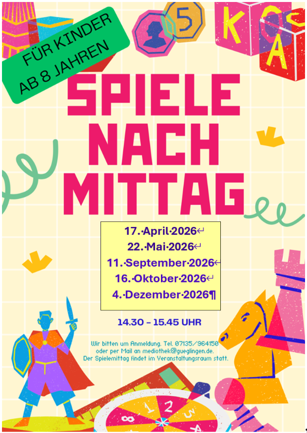 Diese Veranstaltung richtet sich an Kinder ab 8 Jahren und findet in unserem Veranstaltungsraum statt. Wir freuen uns auf Eurer Teilnahme und spannende Spielerunden!