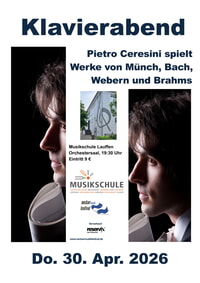 Am Donnerstag, 30. April, 19:30 Uhr, tritt der aus Parma stammende Pianist Pietro Ceresini, der an den Musikhochschulen Freiburg und Innsbruck lehrt, auf dem Steinway-Flügel in der Südstraße auf. Es erklingen Werke von Johann Sebastian Bach, Anton Webern, Johannes Brahms und Martin Münch.