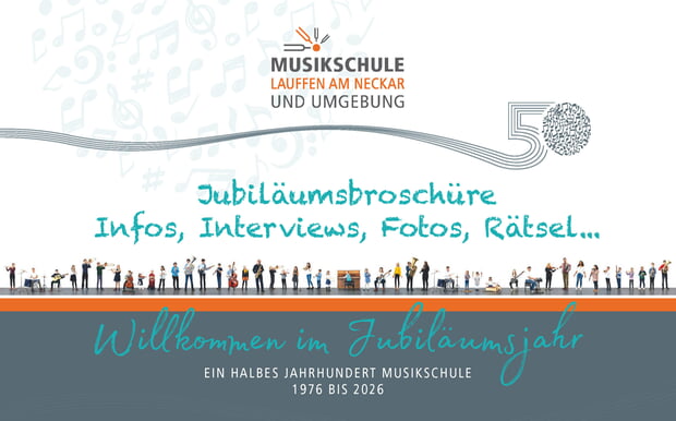 Kennen Sie schon unsere Jubiläumsbroschüre anlässlich des 50-jährigen Bestehens der Musikschule? Die Broschüre bietet einen spannenden Einblick in unsere Ausbildungsangebote, enthält interessante Interviews mit Zeitzeugen und ehemaligen SchülerInnen sowie eine Übersicht aller Termine im Jahr 2026. Ergänzt wird sie durch musikalische Rätsel für Groß und Klein und zahlreiche eindrucksvolle Fotos aus der Geschichte unserer Musikschule.